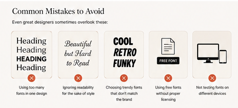 Using too many fonts creates visual chaos. Strong brands usually stick to 2–3 font styles.