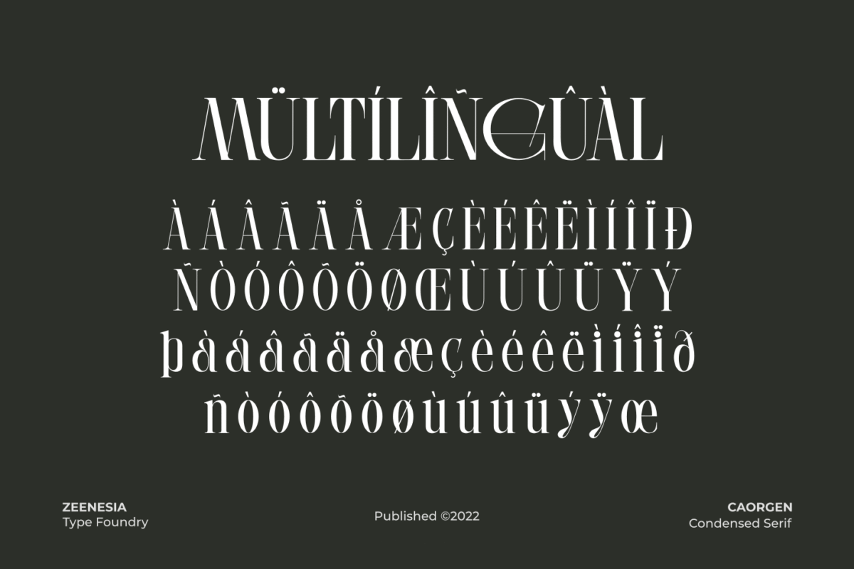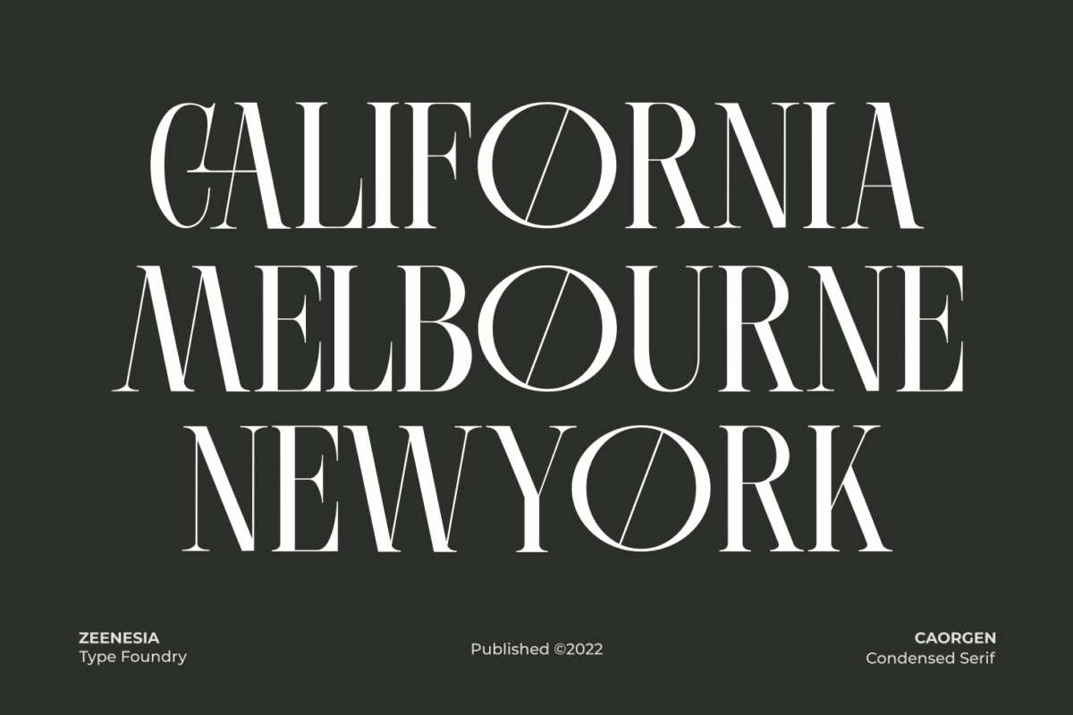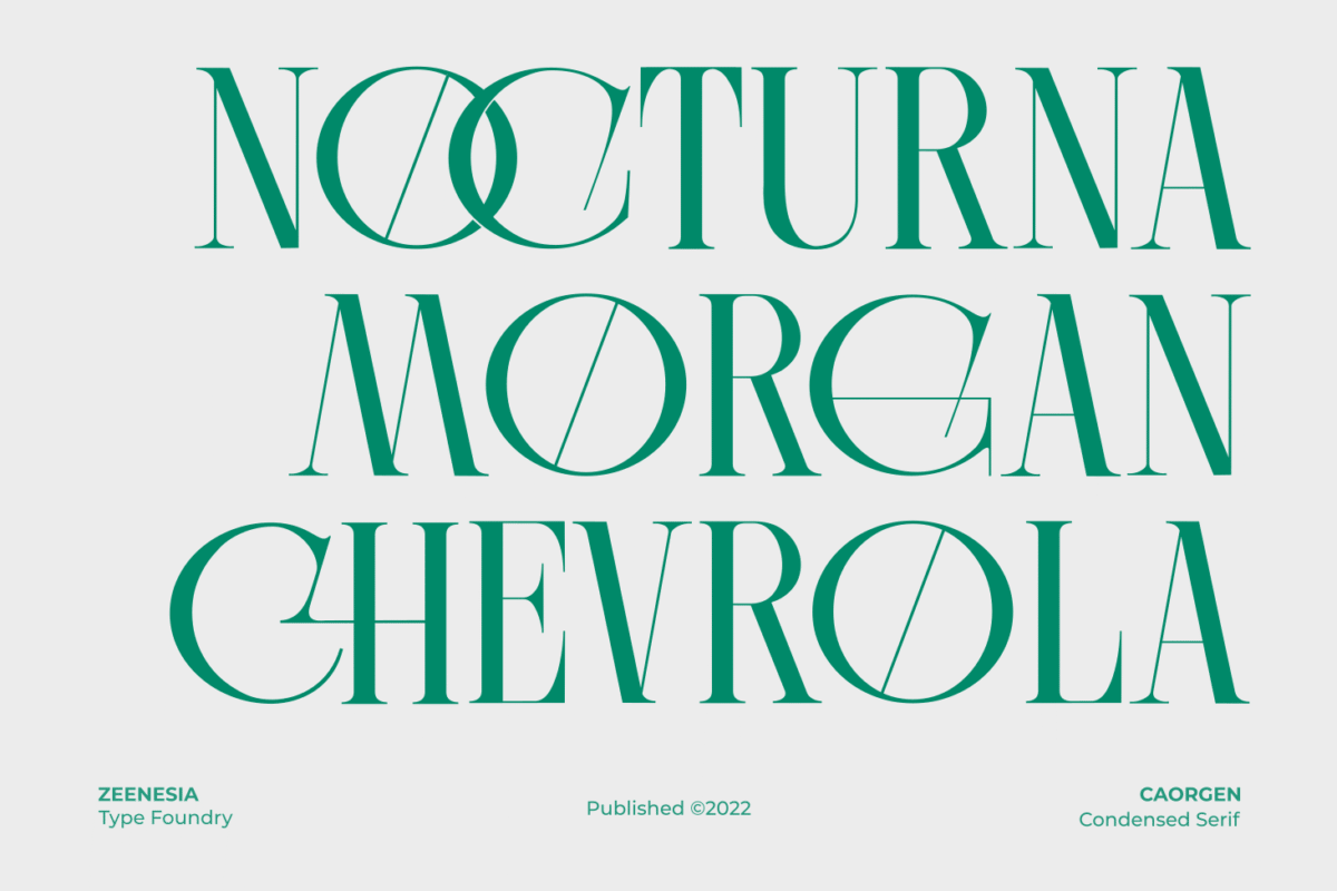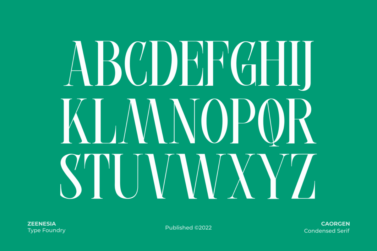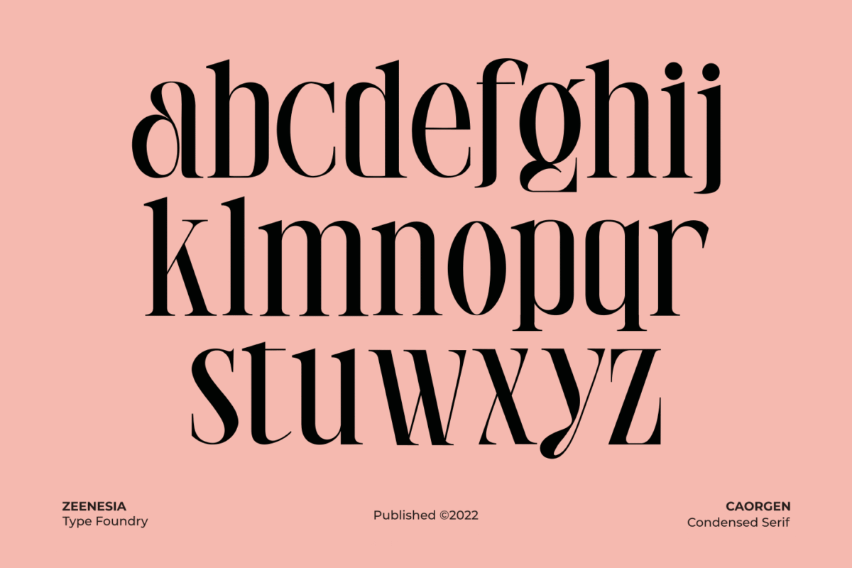 Caorgen is a stylish and modern serif font. Its unique personality and charm are perfect for creating fashionable designs. This font is PUA encoded which means you can access all the glyphs and ligatures with ease!