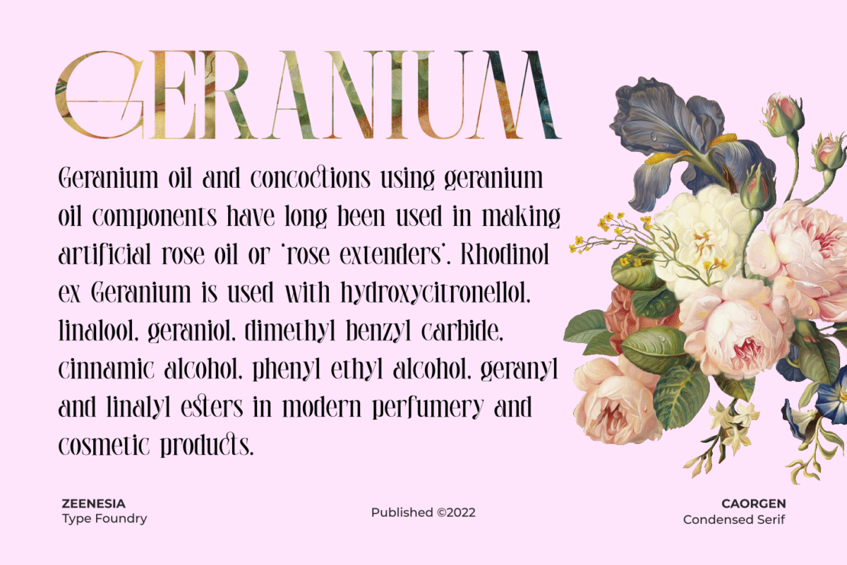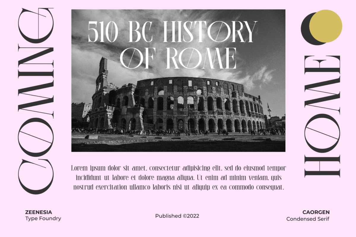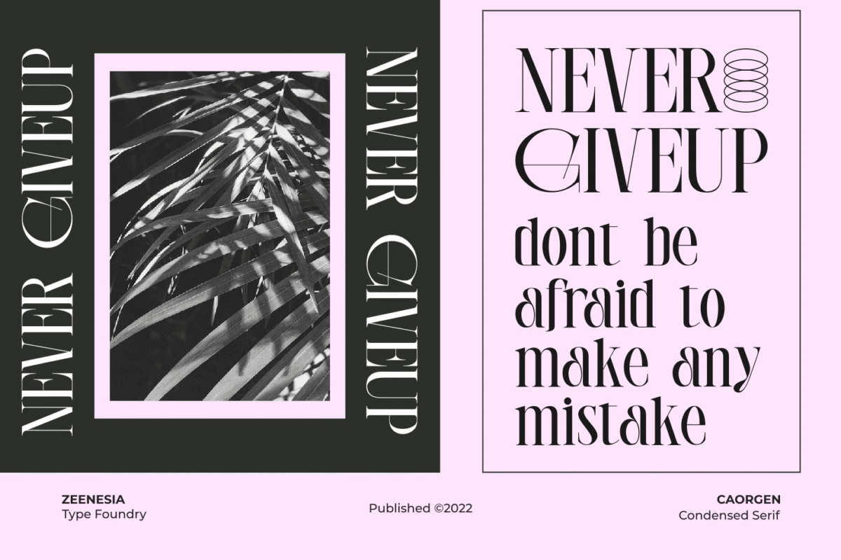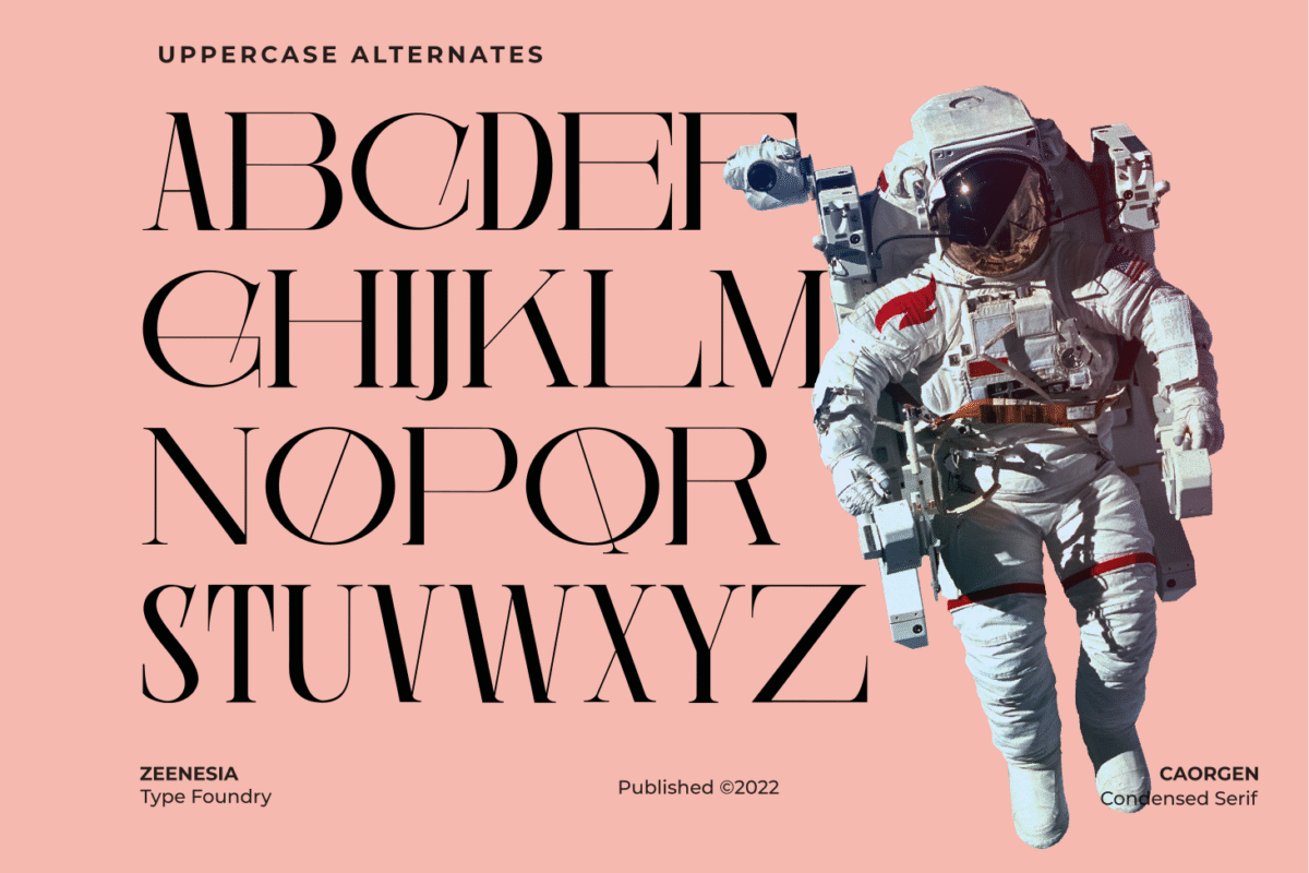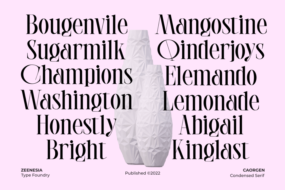 Caorgen is a stylish and modern serif font. Its unique personality and charm are perfect for creating fashionable designs. This font is PUA encoded which means you can access all the glyphs and ligatures with ease!