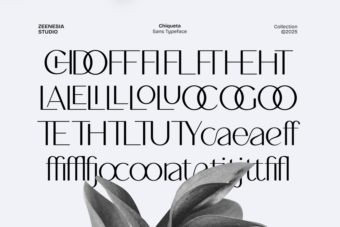 Chiqueta is a modern sans–serif typeface designed with a perfect balance of elegance and contemporary style. Its sleek, minimalist letterforms feature refined curves and distinctive geometric touches, creating a sophisticated visual identity suitable for high–end branding.