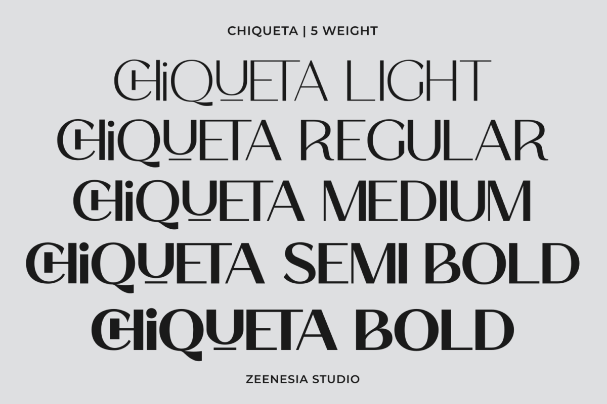 – Chiqueta Light, Regular, Medium, Semi Bold, Bold (OTF/TTF)