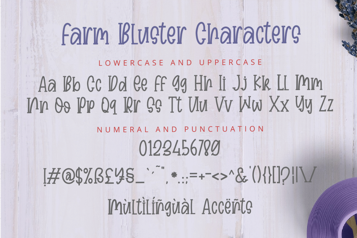 Farm Bluster is a fun, relaxed and quirky display font. It looks lovely on a variety of design ideas. Farm Bluster embodies playfulness and authenticity and is the perfect choice for any children activity or school project