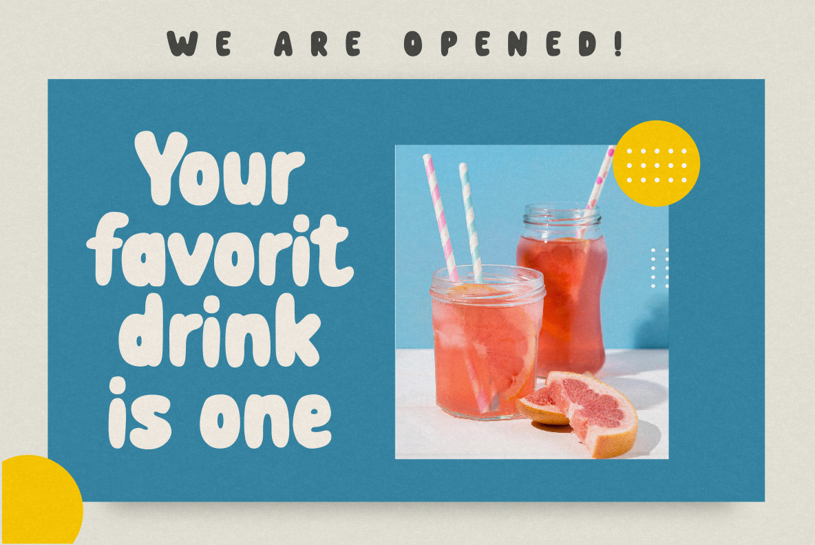 Designed with alternates and ligatures, this typeface gives you creative flexibility to create more dynamic and expressive typography. It’s perfect for branding, posters, packaging, children’s designs, social media graphics, and any project that needs a playful yet confident statement.