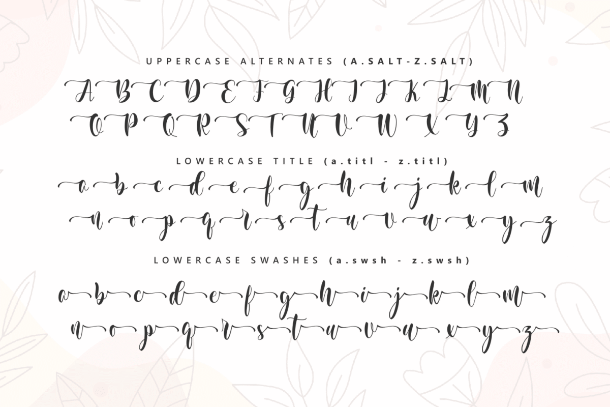 Hello Molarine is a modern handwritten, beautiful and romantic script font. It features alternative, ligatures and swashes. This font so beauty and classy, perfect for Lettering project like wedding invitations, beautiful stationary art, eye-catching social media posts, quotes, cute greeting cards and more. I created more than 50 ekstra character to make this font very classy and look so beauty.