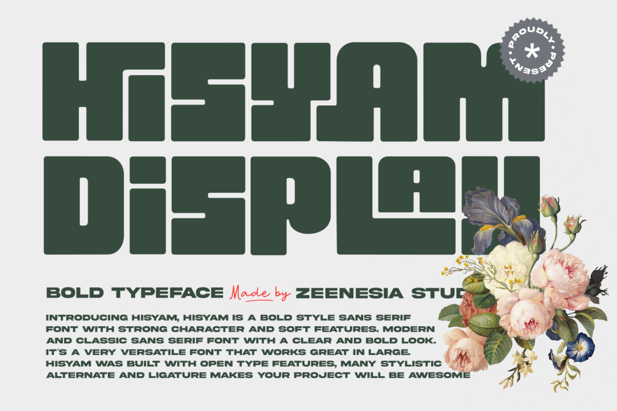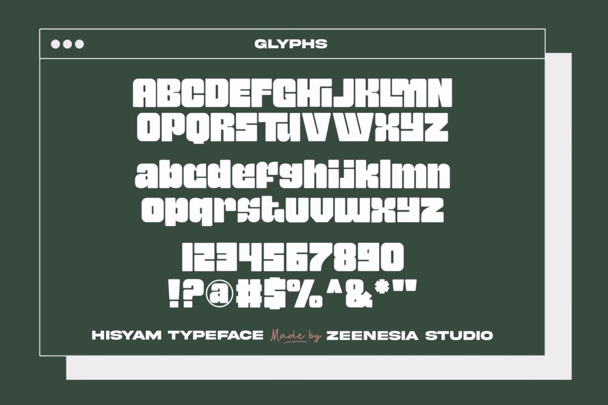 Hisyam is a Bold style sans serif font with strong character and soft features. modern
