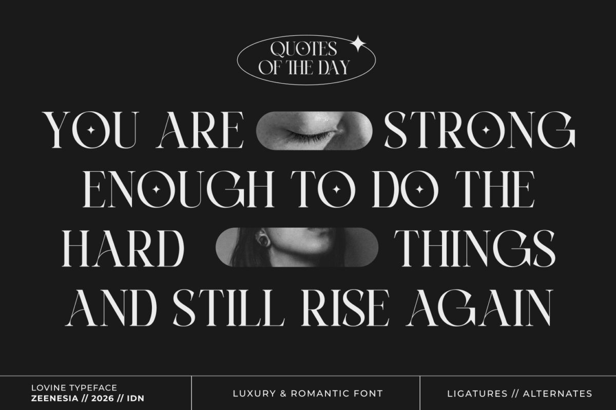 Lovine is a modern luxury serif typeface that embodies elegance, sophistication, and timeless beauty. Designed with graceful curves and striking high-contrast strokes, Lovine brings a perfect harmony between classic refinement and contemporary flair.