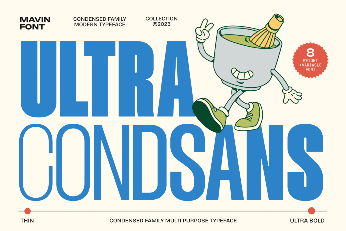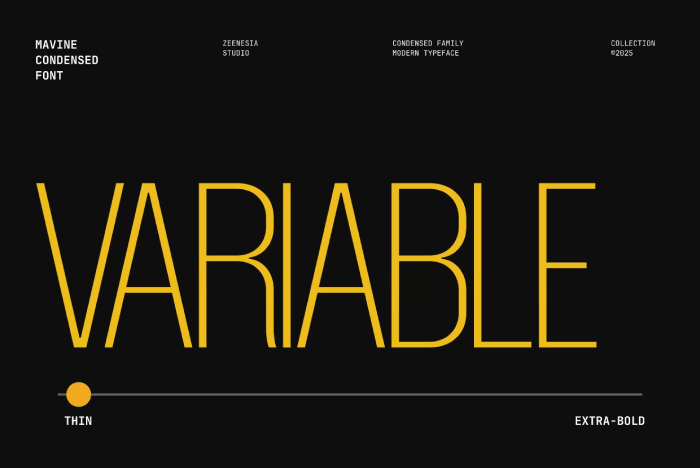 This type family comes with 8 expressive weights — from Thin to Ultra-Bold — plus a versatile Variable Font, giving you full control over contrast, width, and visual intensity. Whether you’re creating headlines, posters, branding, editorial layouts, or digital interfaces, Mavine adapts effortlessly to any creative direction.