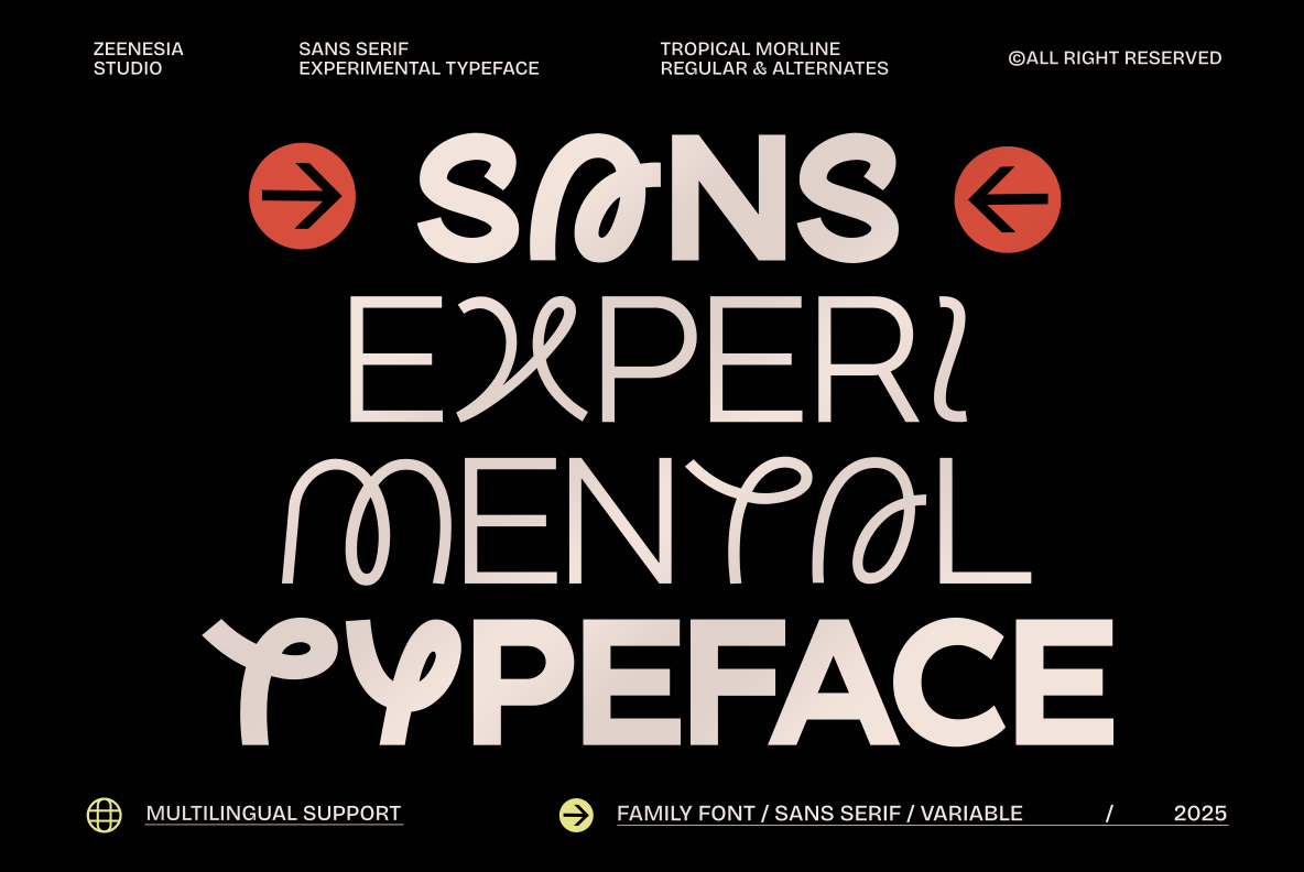 Tropical Morline is an experimental sans serif typeface inspired by playful tropical energy and expressive letterforms. Designed with soft curves, bold proportions, and distinctive alternates, it brings a fresh and joyful personality to any design.